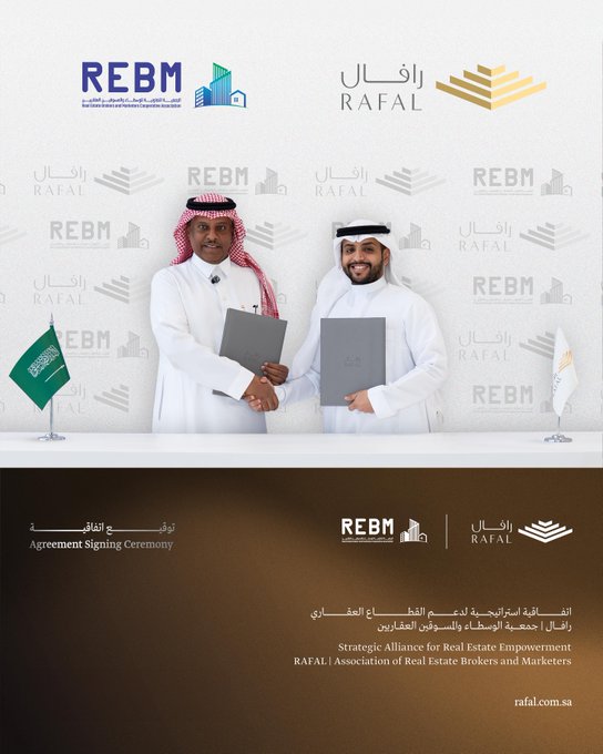وقد مثّل الجمعيةَ في هذه المناسبة رئيسُ مجلس إدارتها الأستاذ ماجد العرابي الحارثي، فيما مثّل شركةَ رافال العقارية رئيسُ قطاعها التجاري الأستاذ عمر المبيض، الذي أكد إيمان الشركة بالكفاءات الوطنية، مشيرًا إلى أن الوسطاء العقاريين يُعدّون شركاء رئيسيين في دعم نمو القطاع وتعزيز كفاءته.