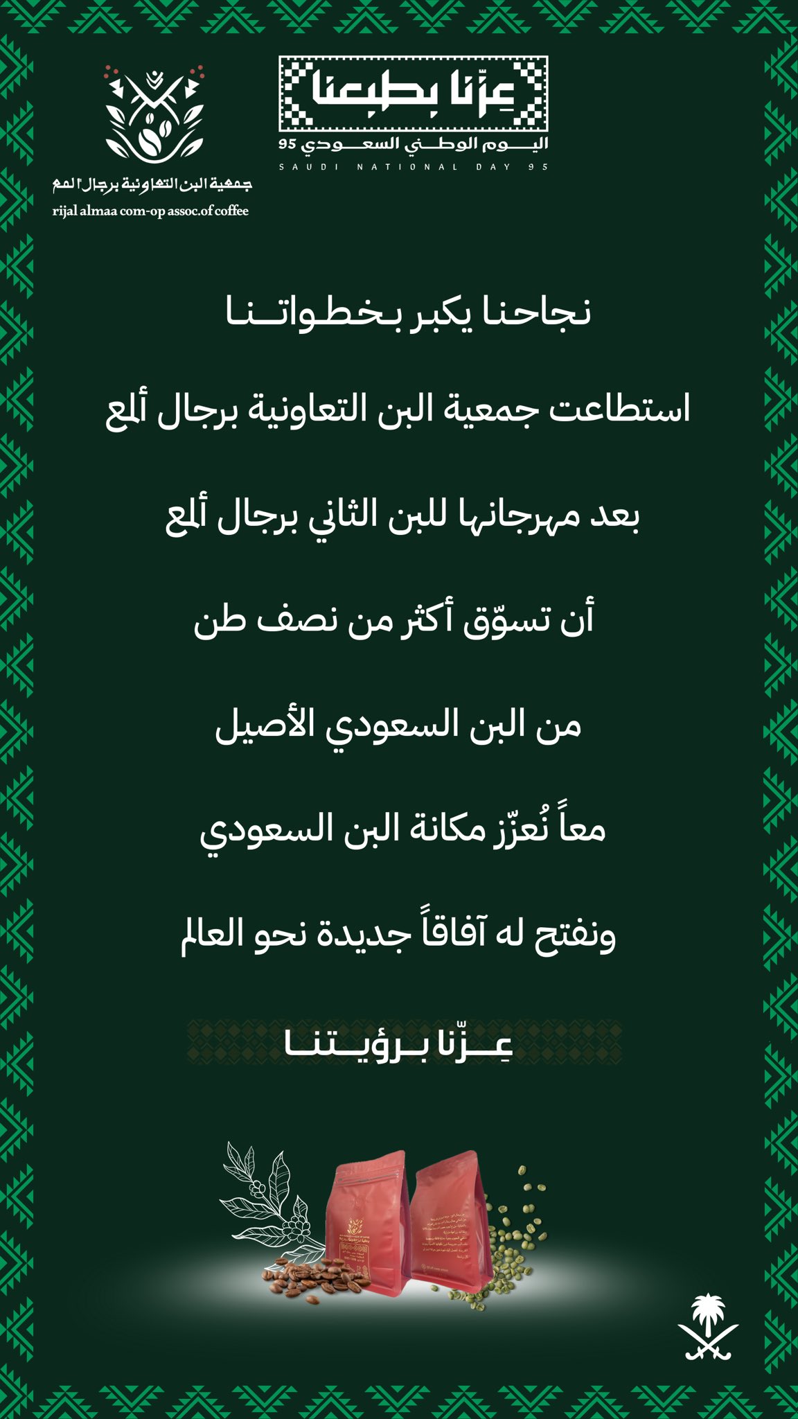 يذكر أن جمعية البن التعاونية برجال ألمع تعمل على تطوير زراعة وإنتاج البن في المنطقة، وتسعى إلى تحقيق الاكتفاء الذاتي والوصول إلى الأسواق العالمية بمنتج سعودي أصيل يحمل هوية المملكة.