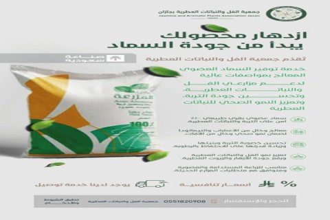 اقرأ المزيدجمعية الفل والنباتات العطرية بجازان تُعلن عن توفير الأسمدة العضوية للمزارعين