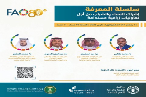 تُنظّم منظمة الأغذية والزراعة للأمم المتحدة (الفاو) بالتعاون مع وزارة البيئة والمياه والزراعة في المملكة ، ندوةً علميةً عبر الإنترنت (زووم) ضمن الموسم الثاني من سلسلة المعرفة، وذلك في إطار برنامج التعاون الفني المشترك بين الجهتين. تأتي هذه الندوة تحت عنوان “إشراك النساء والشباب من أجل تعاونيات زراعية مستدامة”، بالتزامن مع السنة الدولية للمزارعات 2026، وتُعقد يوم الثلاثاء الموافق 3 مارس 2026، من الساعة العاشرة مساءً حتى الحادية عشرة مساءً. يُشارك في هذه الندوة نخبة من الخبراء والمختصين، من بينهم د. جاريد ماتابي المستشار الفني للتعاونيات في منظمة الفاو، ود. محمد الشايع من جامعة الملك سعود، ود. عبدالعزيز الدحوم مدير إدارة الشراكات والتمكين للقطاع التعاوني بوزارة الموارد البشرية والتنمية، والمهندس زيد المشيلح مدير عام الإدارة العامة للتسويق والجمعيات التعاونية بوزارة البيئة والمياه والزراعة. ويتولى إدارة الحوار الأستاذ خالد آل نزهة، الخبير الوطني للتعاونيات الزراعية في منظمة الفاو. للتسجيل في الندوة الرجاء الضغط على الرابط أدناه https://t.co/sYiFO6wRaa