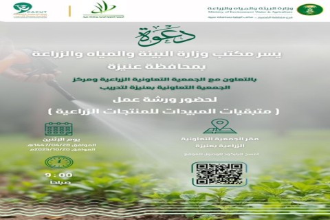 تنظم الجمعية التعاونية الزراعية بعنيزة بالتعاون مع مكتب وزارة البيئة والمياه والزراعة بمحافظة عنيزة، ورشة عمل متخصصة حول “متبقيات المبيدات للمنتجات الزراعية”. وتقام الورشة يوم الاثنين 20 أكتوبر 2025م، في تمام الساعة التاسعة صباحاً، بمقر الجمعية الزراعية في سوق الخضار المركزي بعنيزة. وتهدف الورشة إلى تعزيز الوعي لدى المزارعين والمختصين بأفضل الممارسات في التعامل مع متبقيات المبيدات الزراعية، وضمان سلامة المنتجات الزراعية وفق المعايير والاشتراطات الصحية المعتمدة. وتأتي هذه الفعالية ضمن جهود الجمعية المستمرة في دعم القطاع الزراعي بالمحافظة، وتطوير قدرات العاملين فيه، والارتقاء بجودة الإنتاج الزراعي المحلي. للتسجيل والمزيد من المعلومات، يمكن التواصل مع الجمعية التعاونية الزراعية بعنيزة.