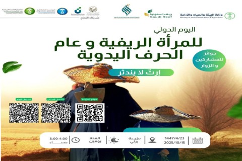 نظمت الجمعية التعاونية "هجر" للتنمية الزراعية بالأحساء، بالتعاون مع مكتب وزارة البيئة والمياه والزراعة بالمحافظة، فعالية خاصة للاحتفال باليوم العالمي للمرأة الريفية وعام الحرف اليدوية 2025، وذلك يوم الأربعاء الموافق 15 أكتوبر 2025م في مزرعة برني. وتضمنت الفعالية التي استمرت يومين من الساعة الرابعة عصراً حتى الثامنة مساءً، مشاركة أكثر من 60 عارضة قدمن منتجات متنوعة من الحرف اليدوية والصناعات التقليدية، احتفالاً بعطاء المرأة وصناعة الجمال من روح الأرض. كما شهدت الفعالية إقامة 8 ورش عمل متخصصة تحت عنوان “طوّر من نفسك” لتطوير المهارات الحرفية وإعادة تدوير مخلفات النخيل، في إطار دعم الحرف اليدوية وتمكين المرأة الريفية. وأكدت الجمعية على أهمية هذه الفعاليات في تعزيز دور المرأة الريفية وإبراز مساهماتها في التنمية المستدامة، مع توفير منصة لعرض وتسويق منتجاتها الحرفية والزراعية. يُذكر أن الفعالية جاءت بدعم من وزارة البيئة والمياه والزراعة وعدد من الجهات الحكومية والخاصة المهتمة بالتنمية الزراعية وتمكين المرأة.