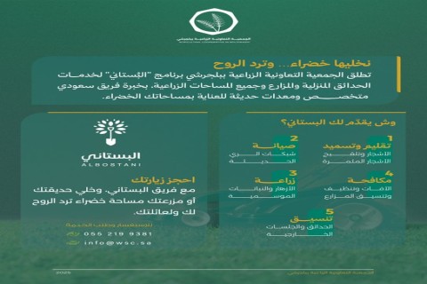 أعلنت الجمعية التعاونية الزراعية ببلجرشي عن إطلاق برنامج “بستاني” الجديد، الذي يهدف إلى تقديم خدمات متكاملة للمزارعين وأصحاب الحدائق المنزلية في منطقة بلجرشي. يأتي هذا البرنامج ضمن جهود الجمعية لدعم القطاع الزراعي المحلي وتوفير حلول متخصصة تلبي احتياجات المجتمع الزراعي. يقدم برنامج “بستاني” خمس خدمات رئيسية تشمل تقليم وتسميد الأشجار والنخيل المثمرة، وصيانة شبكات الري الحديثة، إضافة إلى خدمات زراعة الأزهار والنباتات الموسمية ومكافحة الآفات وتنظيف وتسوية المزارع. كما يوفر البرنامج خدمة تنسيق الحدائق والجلسات الخارجية، مما يجعله خياراً شاملاً لكافة الاحتياجات الزراعية والبستانية. وأوضحت الجمعية أن البرنامج يستهدف توفير فريق عمل سعودي متخصص ومعدات حديثة للعناية بمساحات الحدائق الخضراء، سواء في المزارع الكبيرة أو الحدائق المنزلية. ويمكن للراغبين في الاستفادة من الخدمات حجز زيارات الفريق إلى مواقعهم مباشرة للحصول على استشارات مجانية وتقديم الحلول المناسبة.
